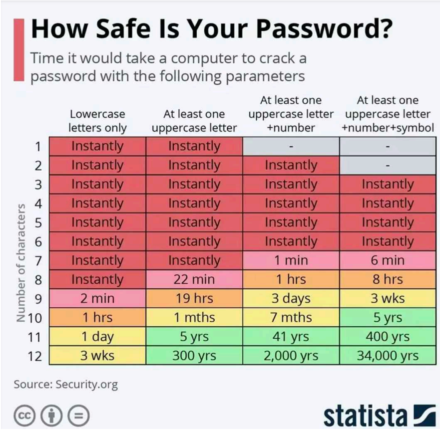 La sécurité des mots de passe est devenue un enjeu crucial à une époque où les cyberattaques sont en forte augmentation. Ce contenu explique combien de temps il faut pour pirater un mot de passe selon sa longueur et sa complexité, en s’appuyant sur des données publiées par Security.org et relayées par Statista.